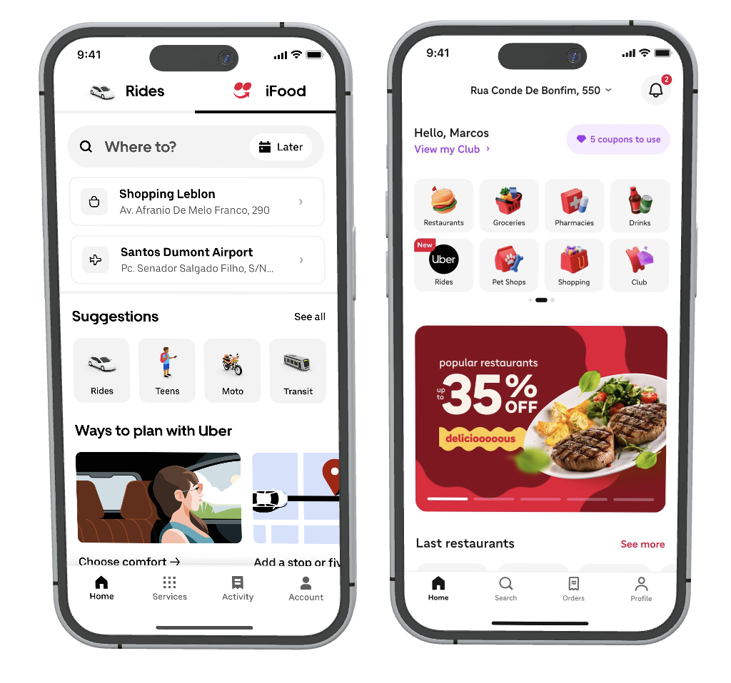 The partnership will bring greater convenience to users of two of Brazil’s most-loved apps, powering a new ride-hailing tab in iFood and a delivery tab in Uber